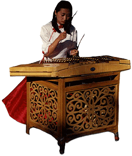 To play the yangchin, the musician sits before it and uses two bamboo hammers to produce the sound. The SoundThe yangchin is categorized as a plucking, or percussion, instrument - just like a piano or harpsichord. The yangchin timbre has the following characteristics: